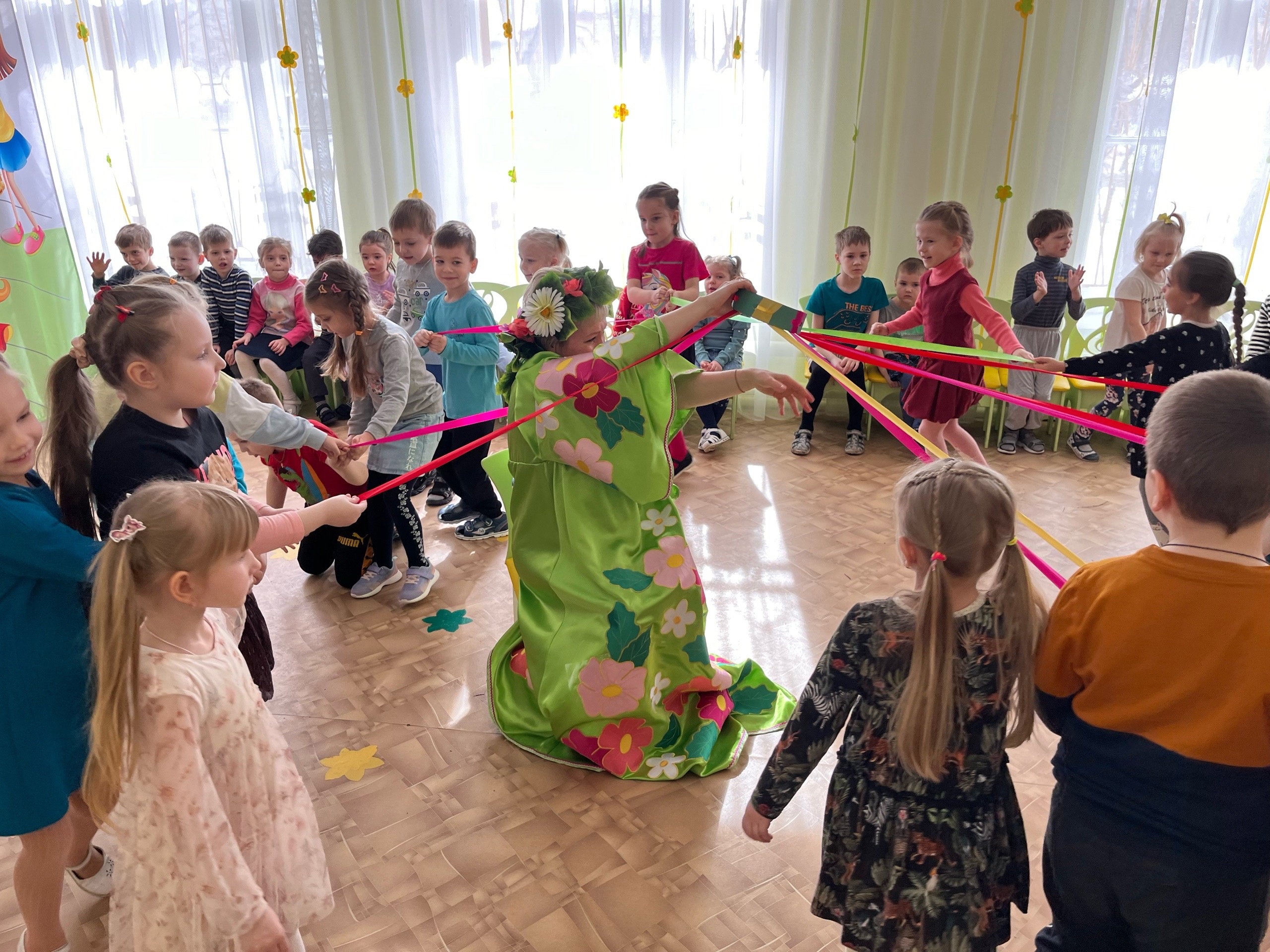 Ребята с румяными щечками ☺, в ярких нарядах и платьях ,так же вместе с гостями и Весной в хороводе, завлекая в весёлую пляску весь детский сад, а затем играли в веселые русские народные игры. Дети старались показать свою смекалку и быстроту, а гости в свою очередь старались повеселить детей. Во всех играх-забавах побеждала дружба! Никто не скучал, все только веселились! Детские глаза выражали восторг, а на лице сияла улыбка от ярких эмоций праздника.